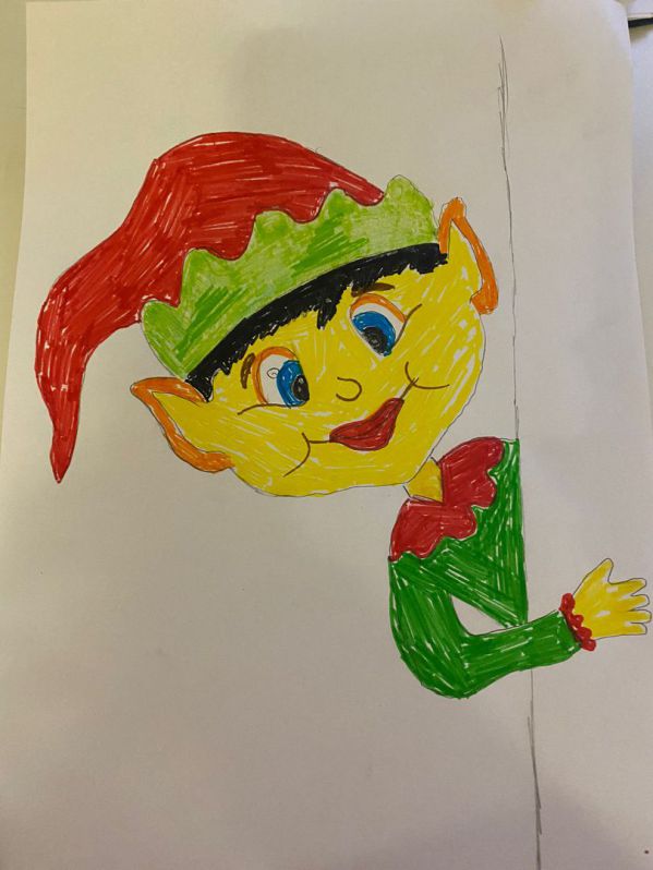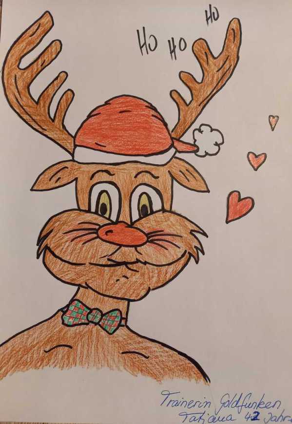 An Tag 4 flatterte uns ein Weihnachts-Elch in den Kalender. Gezeichnet wurde er von Tati ("23"), die die "Goldfunken" trainiert.
