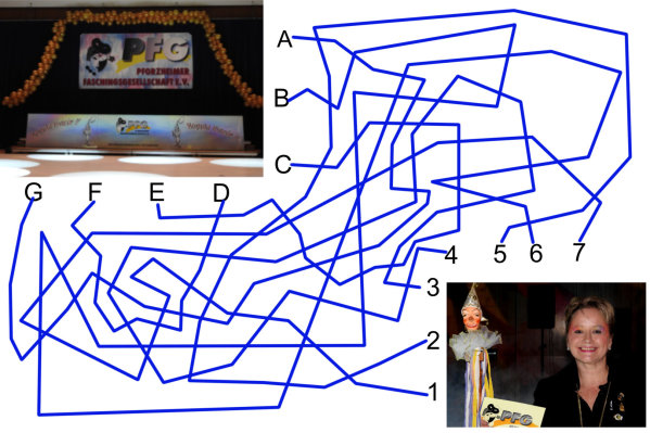 Wenn du den richtigen Weg gefunden hast, schick deine Lösung an presse@pfg-fasching.de