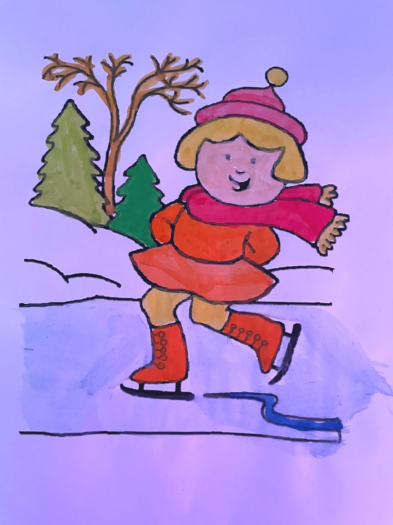 Zum 3. Dezember kommt heute ein Bild von Sophia (6), die zusammen mit ihrer Mama Melanie ("23") von den "Flößer and Friends" diese flotte Schlittschuhläuferin gemalt hat.